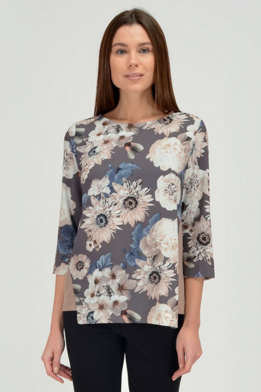 Фото товара 19739, коричневая блузка с цветами