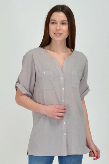 Фото товара 19750, серая хлопковая блуза